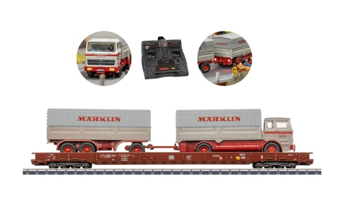 Mit dem neuen Mercedes LKW (Kooperation mit Carson) kann man realistische Be-und Entladeszenen nachstellen. Der LKW ist ferngesteuert und kann somit frei über die Anlage fahren. Der LKW hat außerdem beleuchtete Frontscheinwerfer und Heckleuchten und einen Motorsound. Das Set ist im Zustand der Epoche IV der Deutschen Bundesbahn/ Märklin gestaltet.