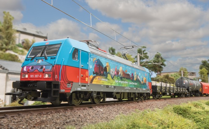 Die bekannte DB Cargo Lok der Baureihe 185.2 kommt als H0 Modell von Märklin und TRIX
